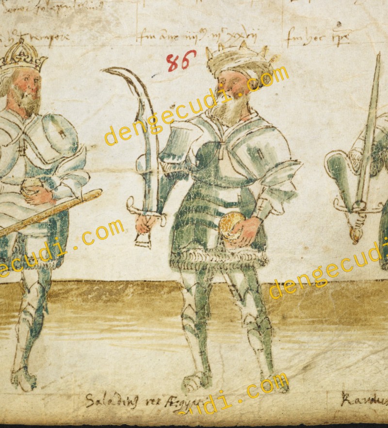 Illustration of Saladin, holding a scimitar