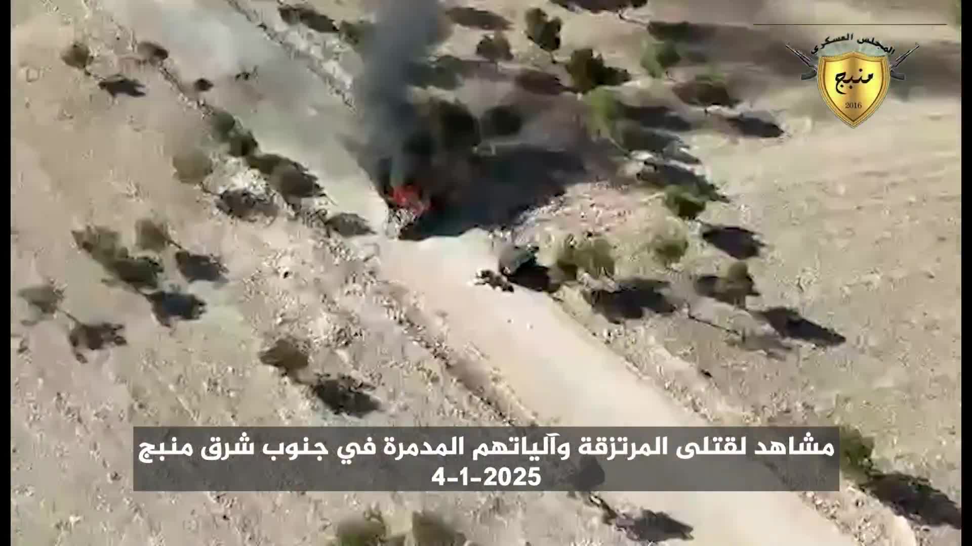 SDF Press: Footage of eliminated Turkish-backed terrorists and their destroyed vehicles in the south and east of Manbij