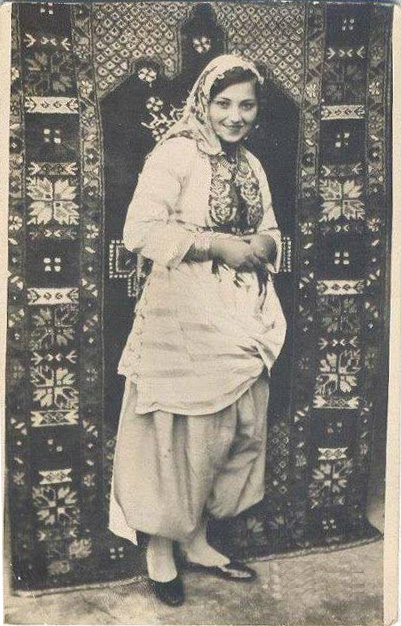 A Kurdish woman against the backdrop of a carpet that she wove herself - Northern Kurdistan, 1930.