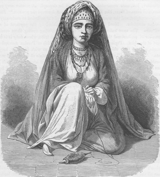 A Kurdish lady in Indoor Dress, Eastern Kurdistan - Antique Print 1885
