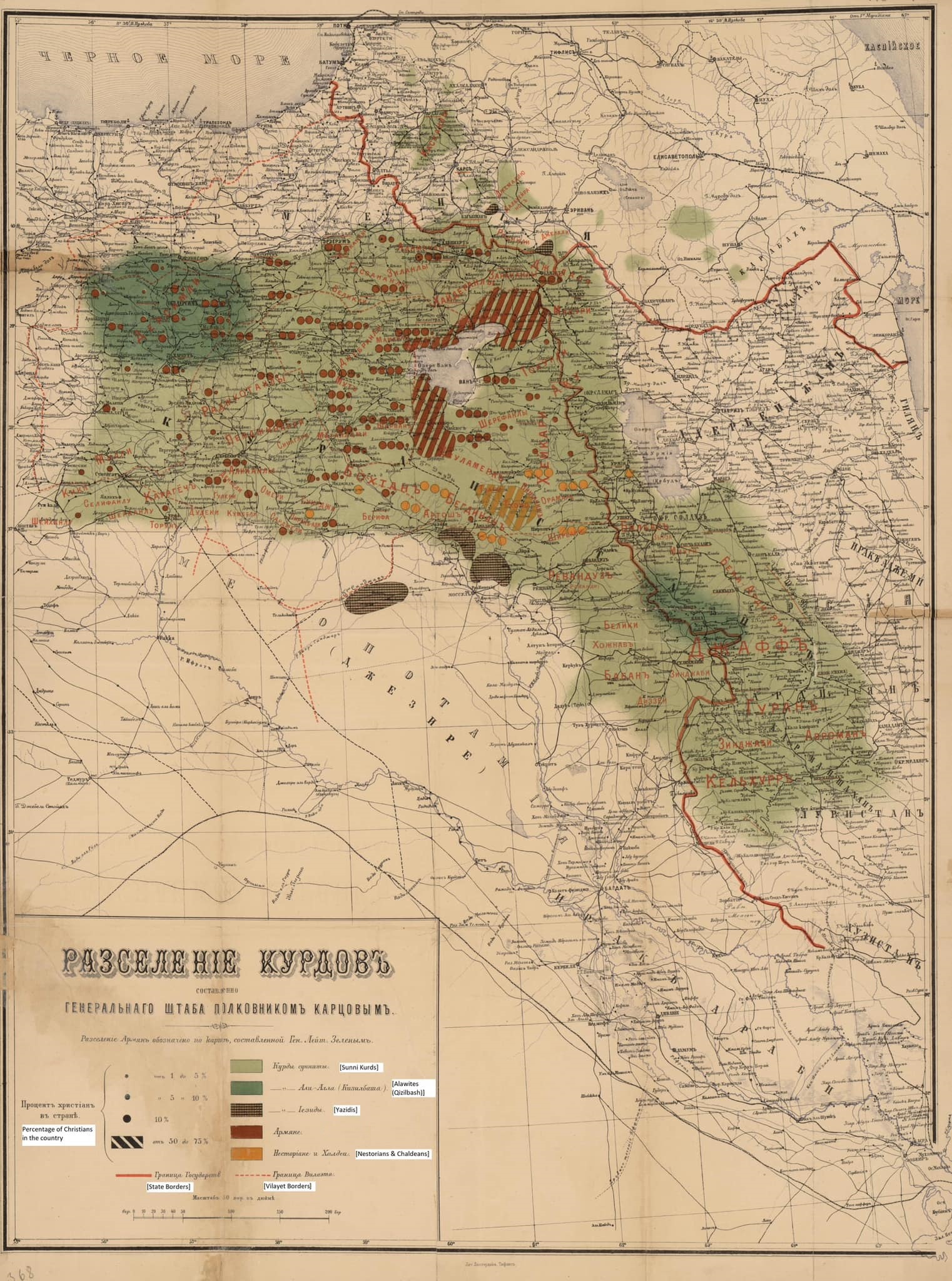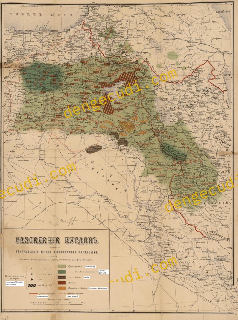 A Russian map of the distribution of Kurds in the Ottoman, Persian & Russian Empires