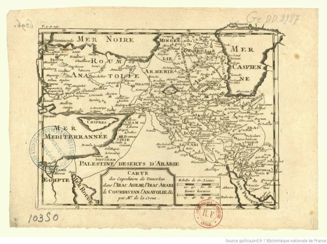 A map drawn in the 1600s and reflecting the 1300s during the time of Tamerlane