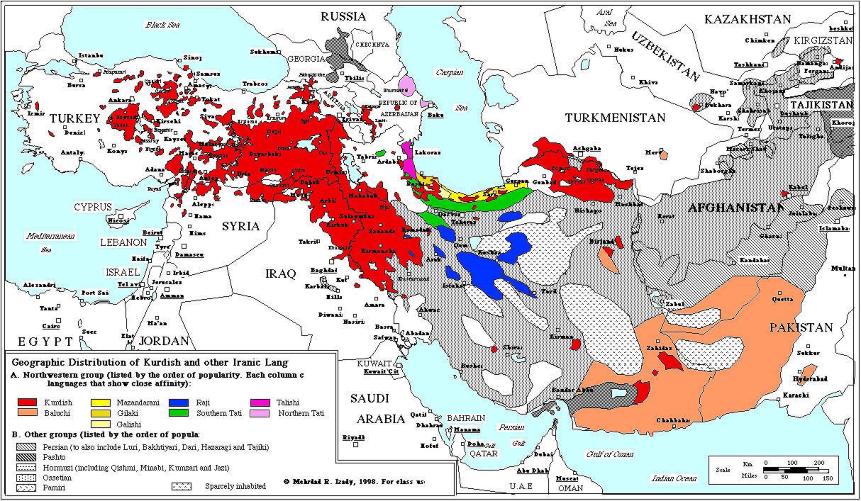 Geographic Distrubition of Kurdistan and other Iranic Lang