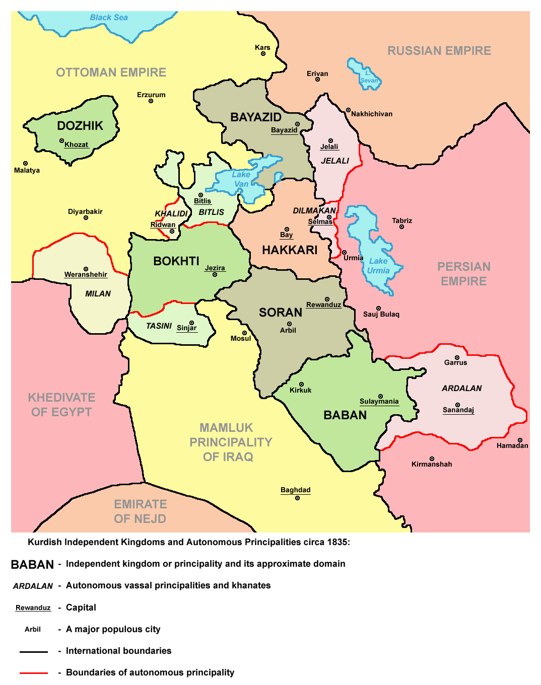 Kurdish Independent Kingdoms and Autonomous Principalities circa. 1835