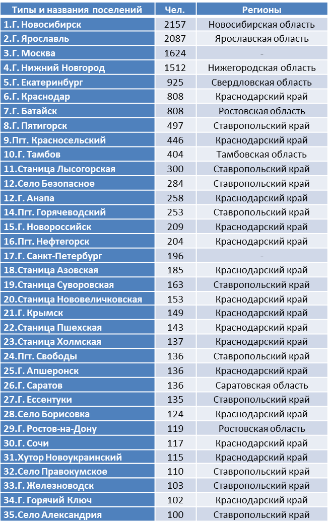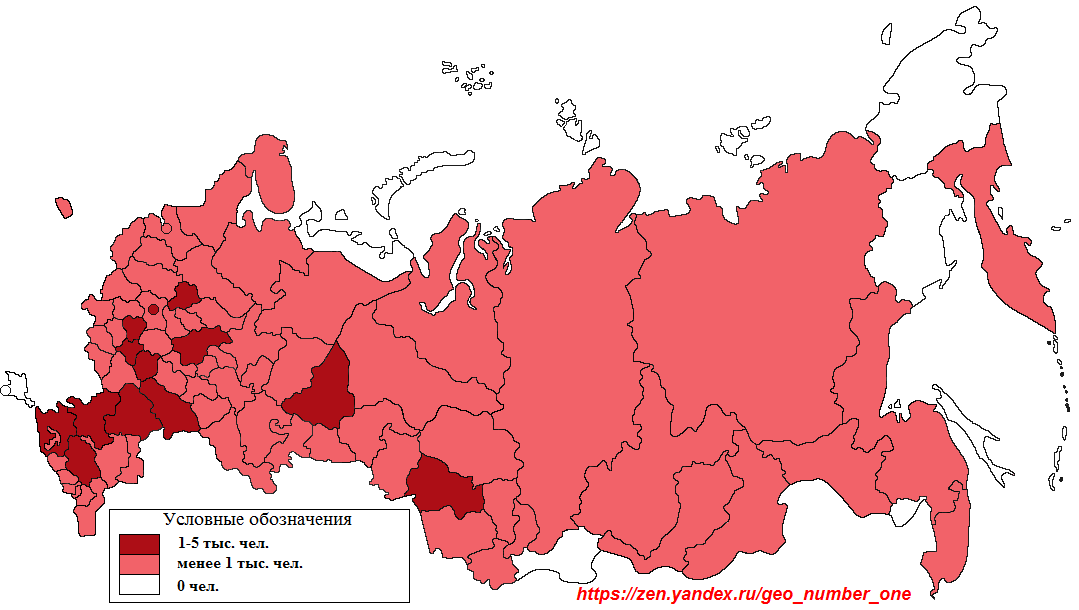 Number of Yazidis in the constituent entities of the Russian Federation, 2010