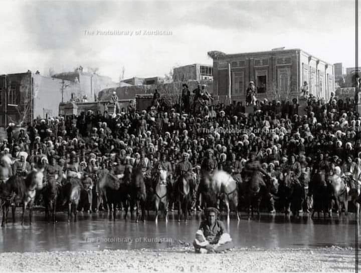 Kurdish village notables in the village of Omar Bek of the Kurdish governorate of Kerkûk, 1930 A picture of the martyr "Marouf Abdul Karim Al-Barzanji" during the events of Kerkûk in 1959
