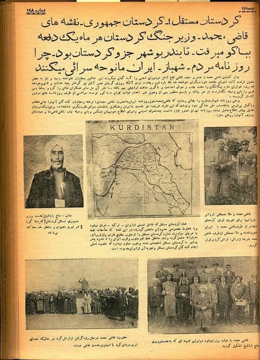an article about the establishment of the Republic of Mahabad, attaching to it a map of Kurdistan, 1947