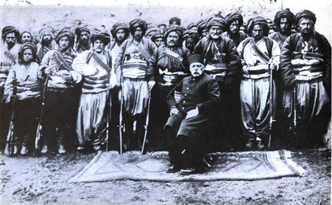 Ottoman Turkish officer (seated) surrounded by Ottoman Kurdish infantry