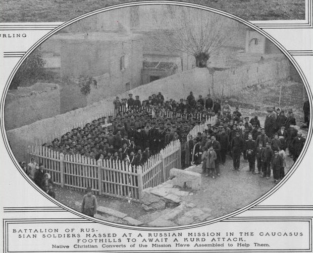 Armenians and Cossack (Russian) soldiers waiting for Kurdish Cavalry, January 1915