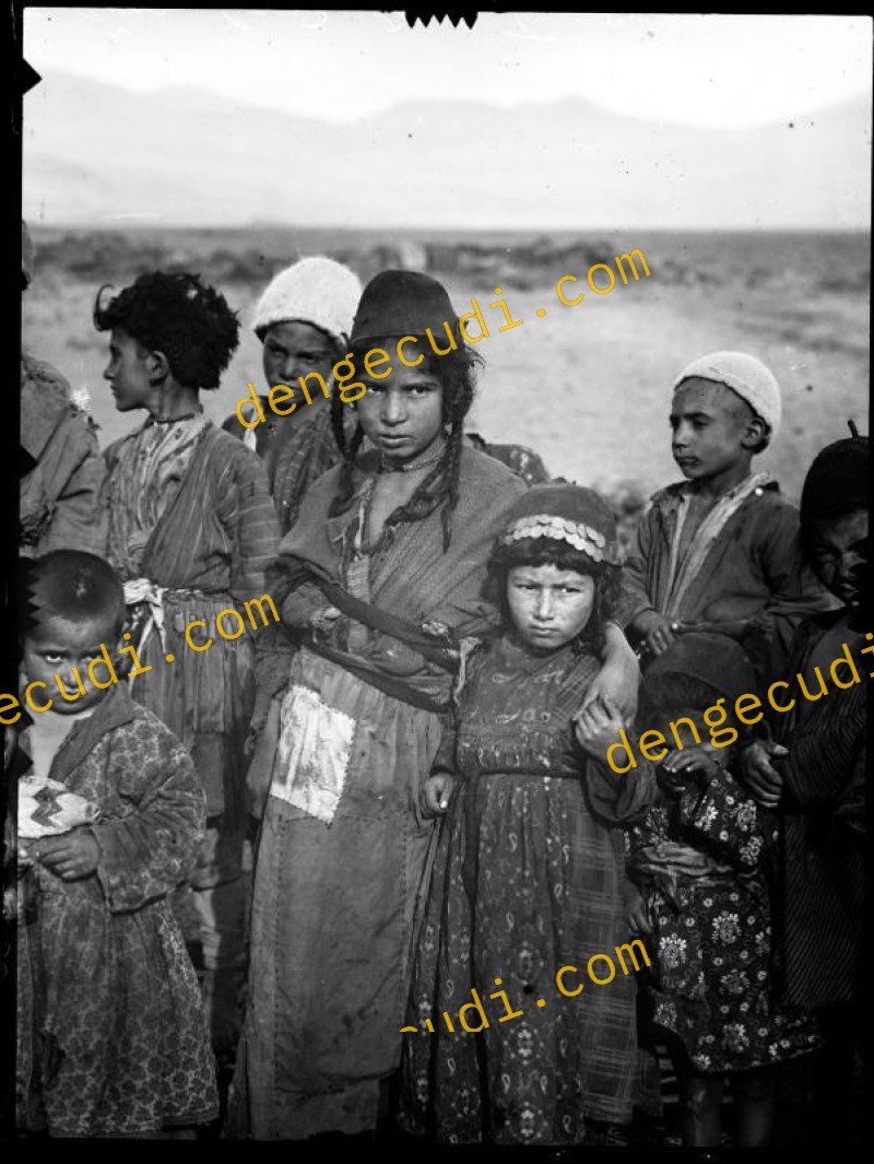 Three men and 14 Kurdish children Portrait with the caption "Kurd"