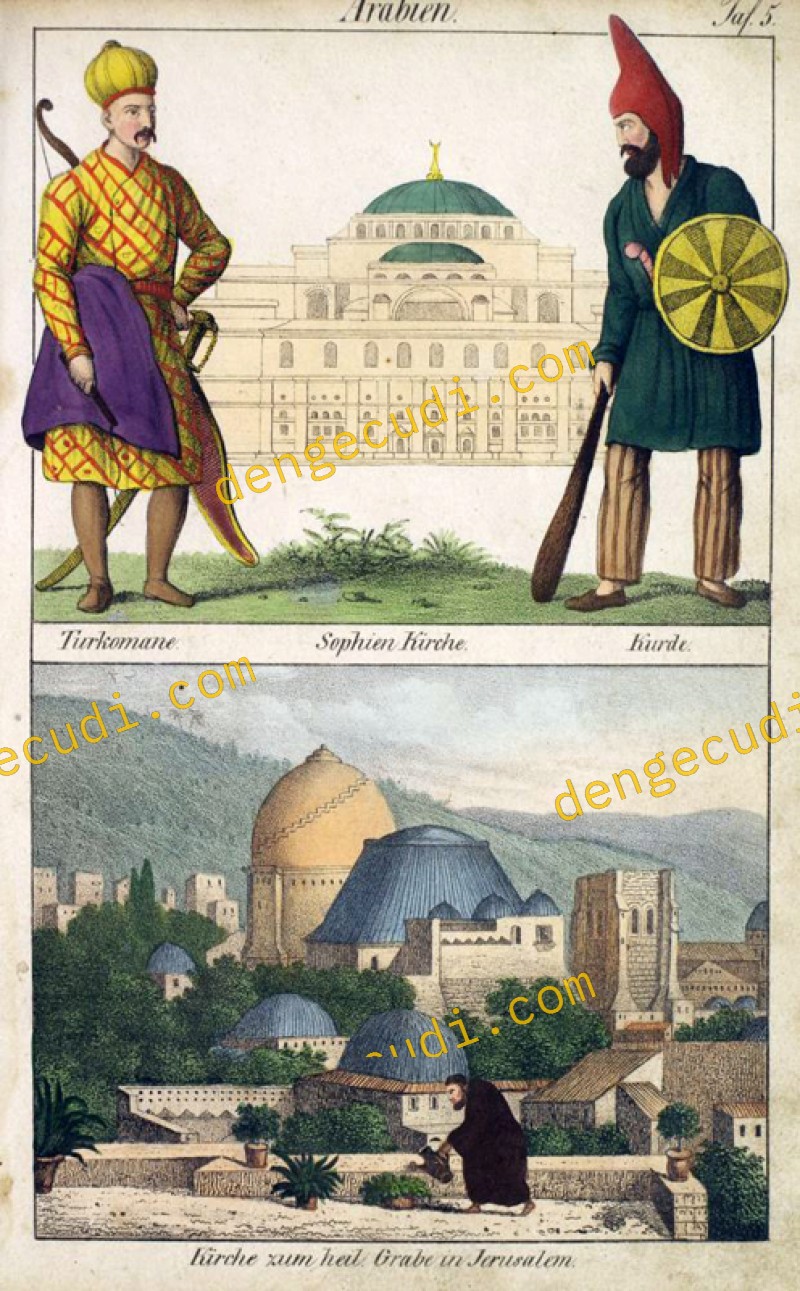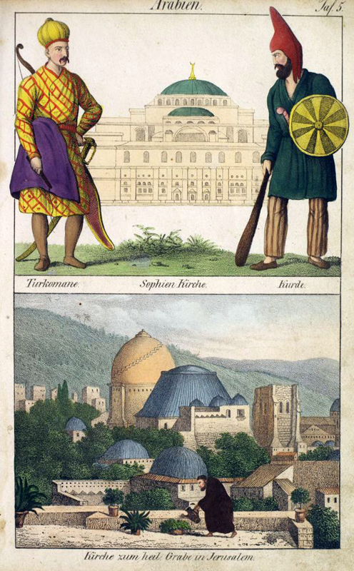 A Turkoman soldier with sword and bow facing a Kurd soldier with club and shield, Istanbul