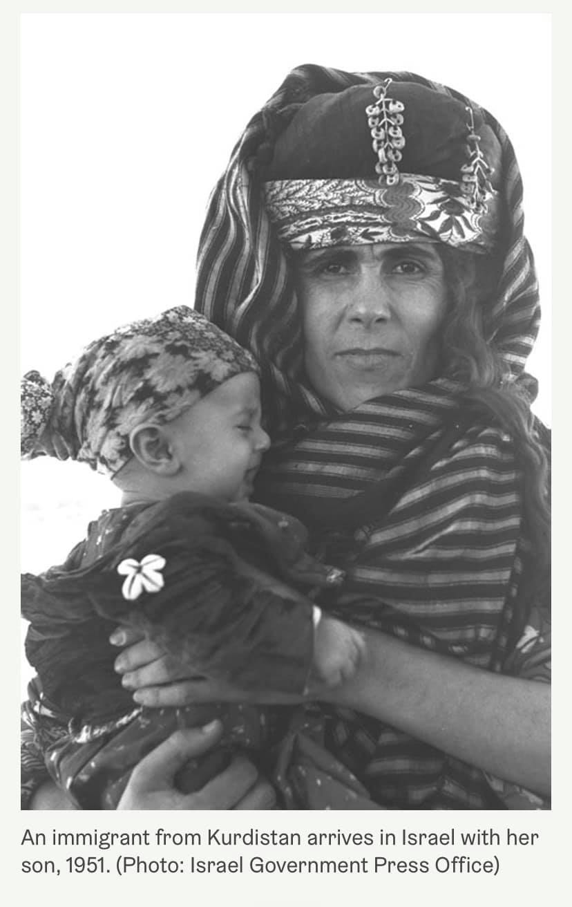 Kurdish Jew lady and her son arrive in Israel/Palestine, 1951