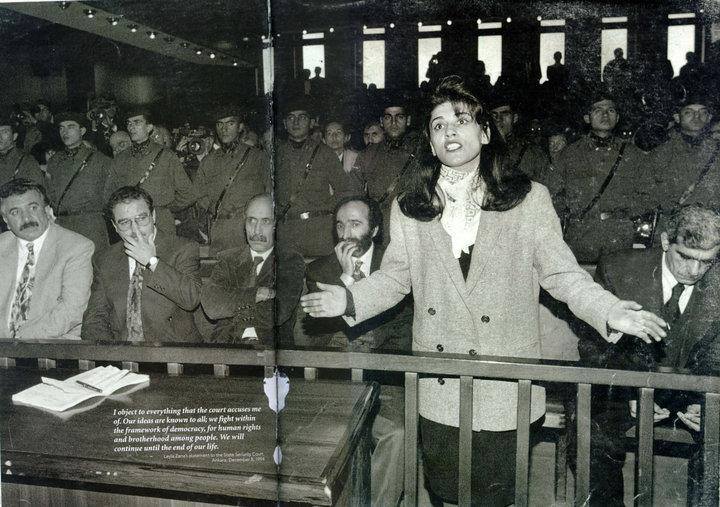 Leyla Zana delivering her final defense speech to the Turkish Parliament