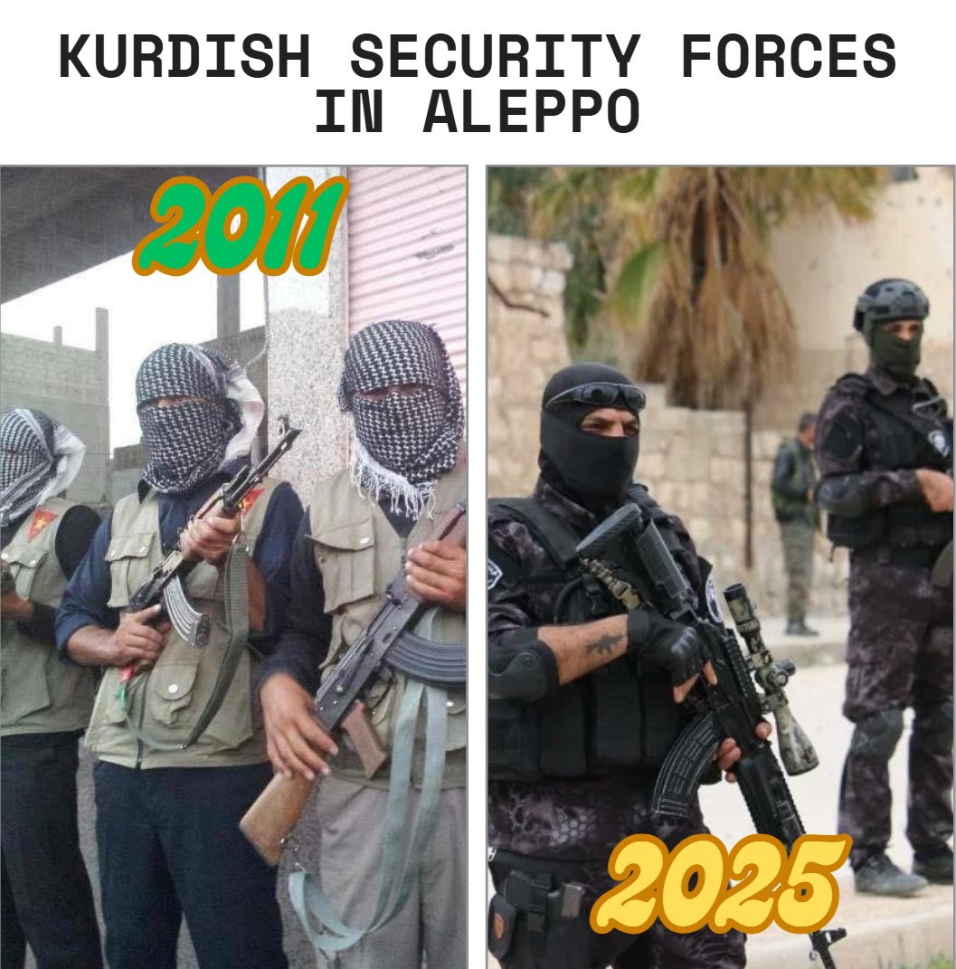 Kurdish Security Forces in Aleppo 2011 vs 2025